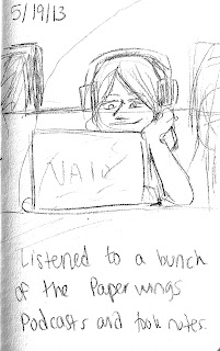So yesterday I listened to some of the Paper Wings Podcast and learned a lot of stuff. I definitely want to catch up on all of these, since they really inspire me a lot. The rest of the night was playing Pokemon with friends, and then my brother came home from Chicago.