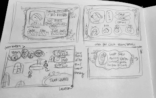 Then I did a few more sketches. Mostly trying to figure out the battle system and then also coming up with some ideas for the shops, the victory screen, and what the overworld could look like.